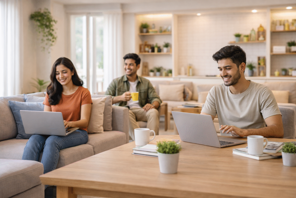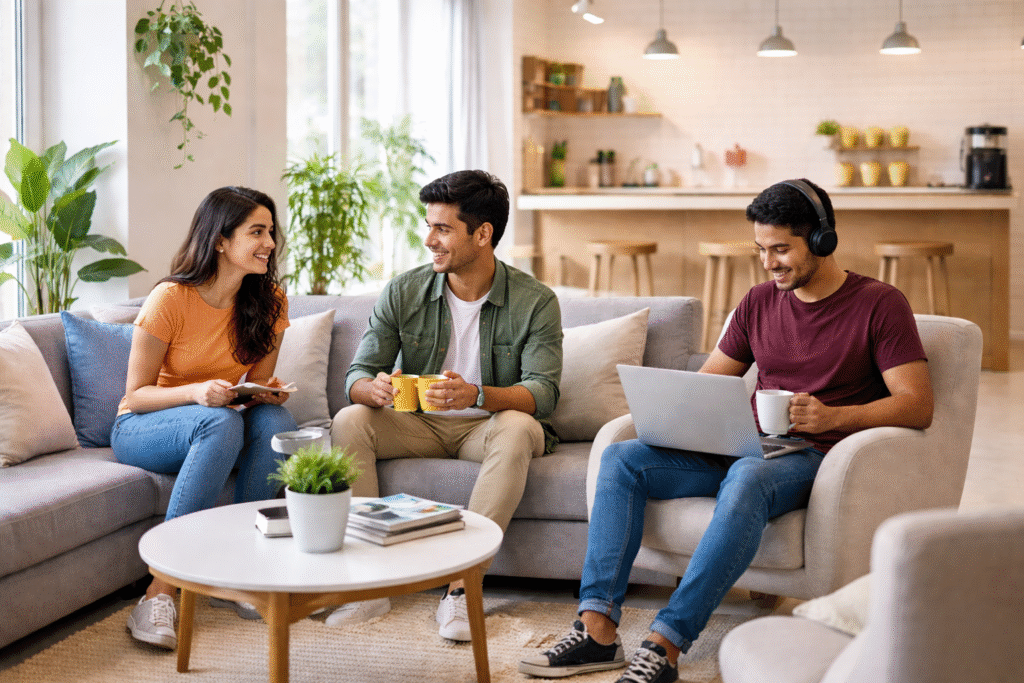 Shelzo Living is located in a calm residential area with easy access to transport, markets, and daily conveniences. Whether you’re heading to college, work, or stepping out for essentials, everything stays comfortably within reach.